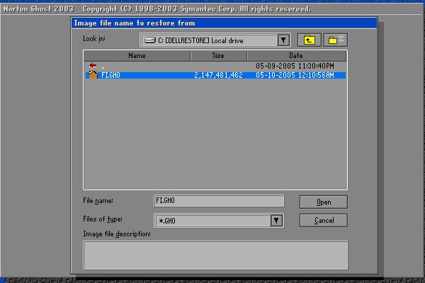 You are now ready to delete the main XP partition on your hard disk and replace it with the image of the partition that is in the FI.GHO backup file.