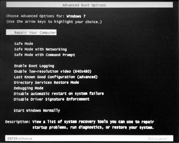 Select the option to "Repair Your Computer" and press the [Enter] key.