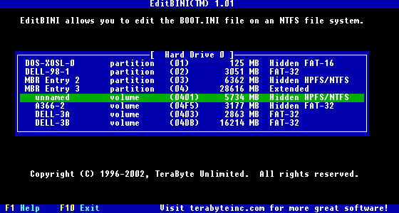 partitions, EditBINI can run from DOS, reach inside the NTFS partition,