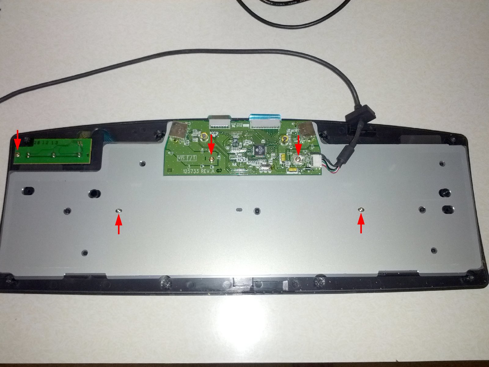 Flip the status lights board and circuit board up so you can remove the metal backing plate.