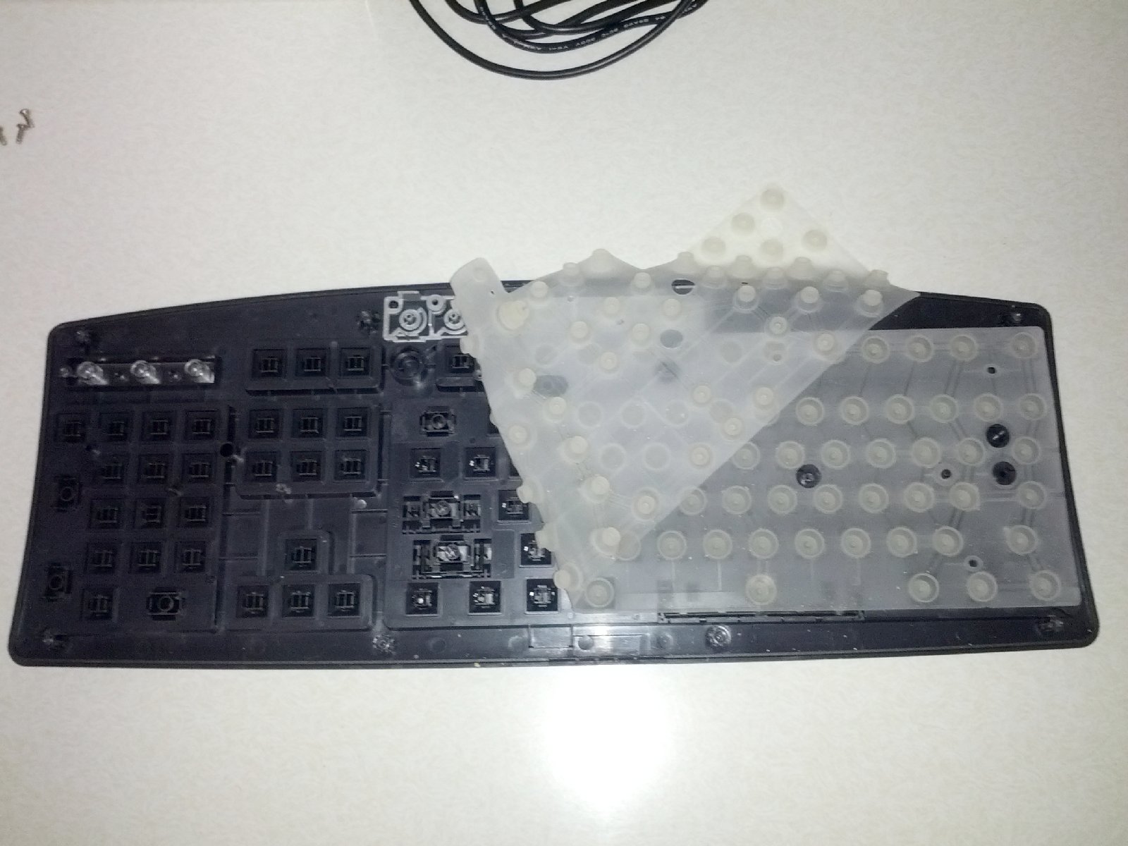 Lift away the rubber membrane. (This membrane is what gives the keys their return bounce.)