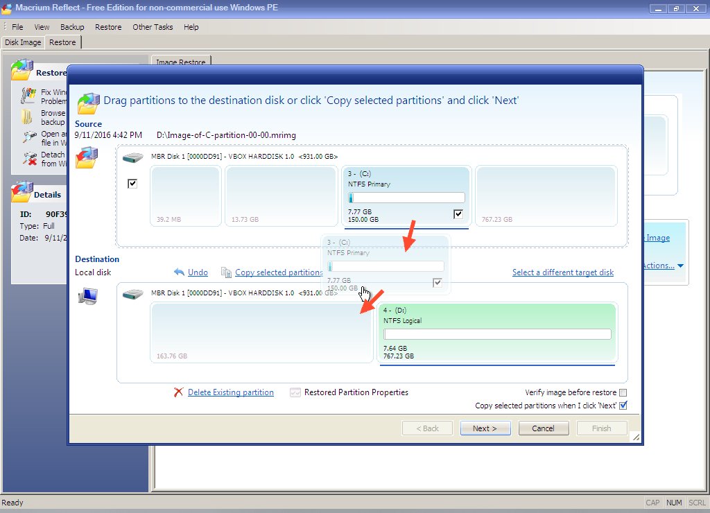 Drag-and-drop the partition from the upper (image) to lower (disk).