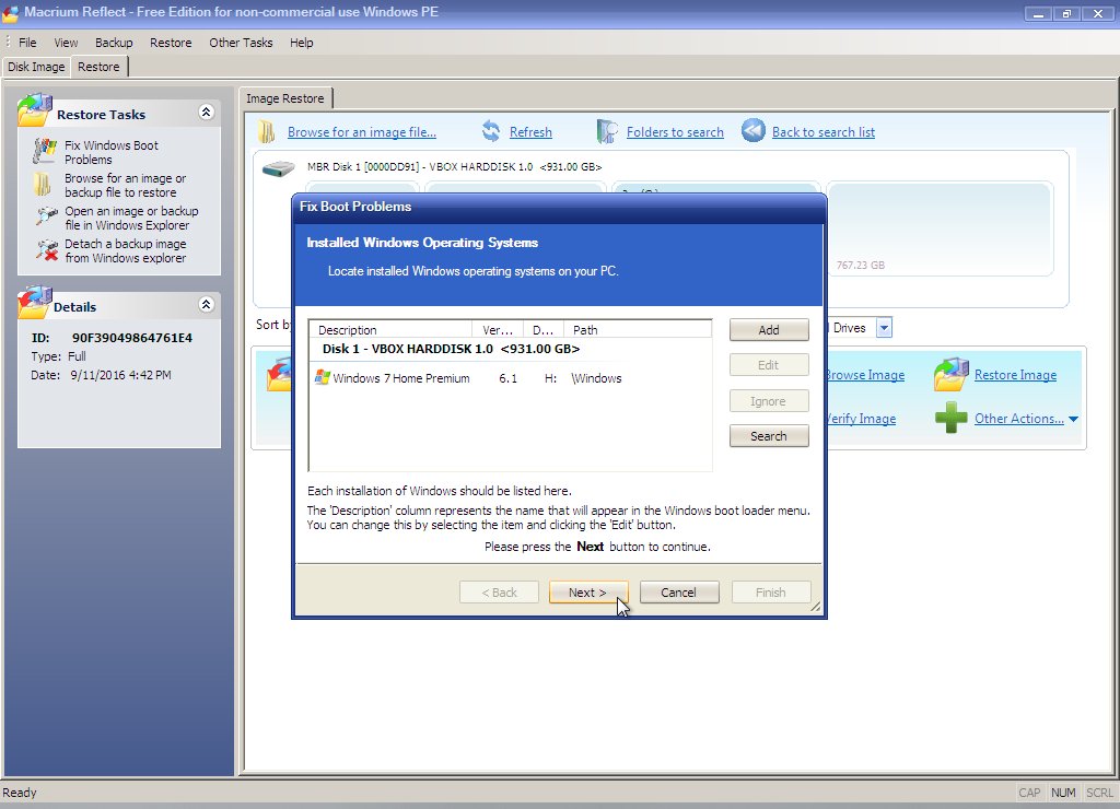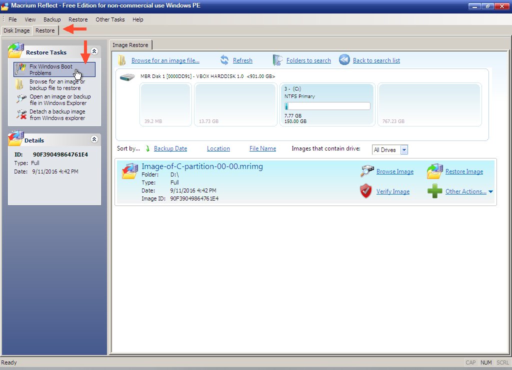In this demonstration, a Macrium Reflect backup image of the OS partition has already been made. If an image has not been made, that should be done first.
