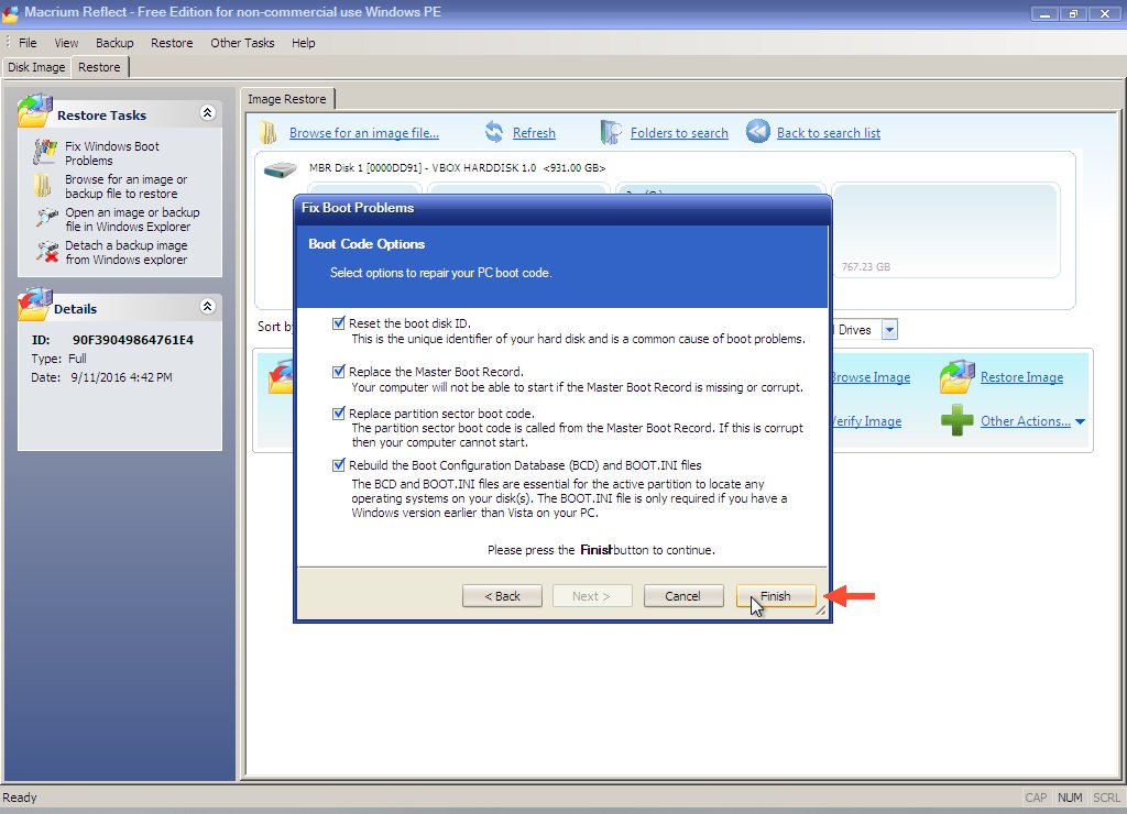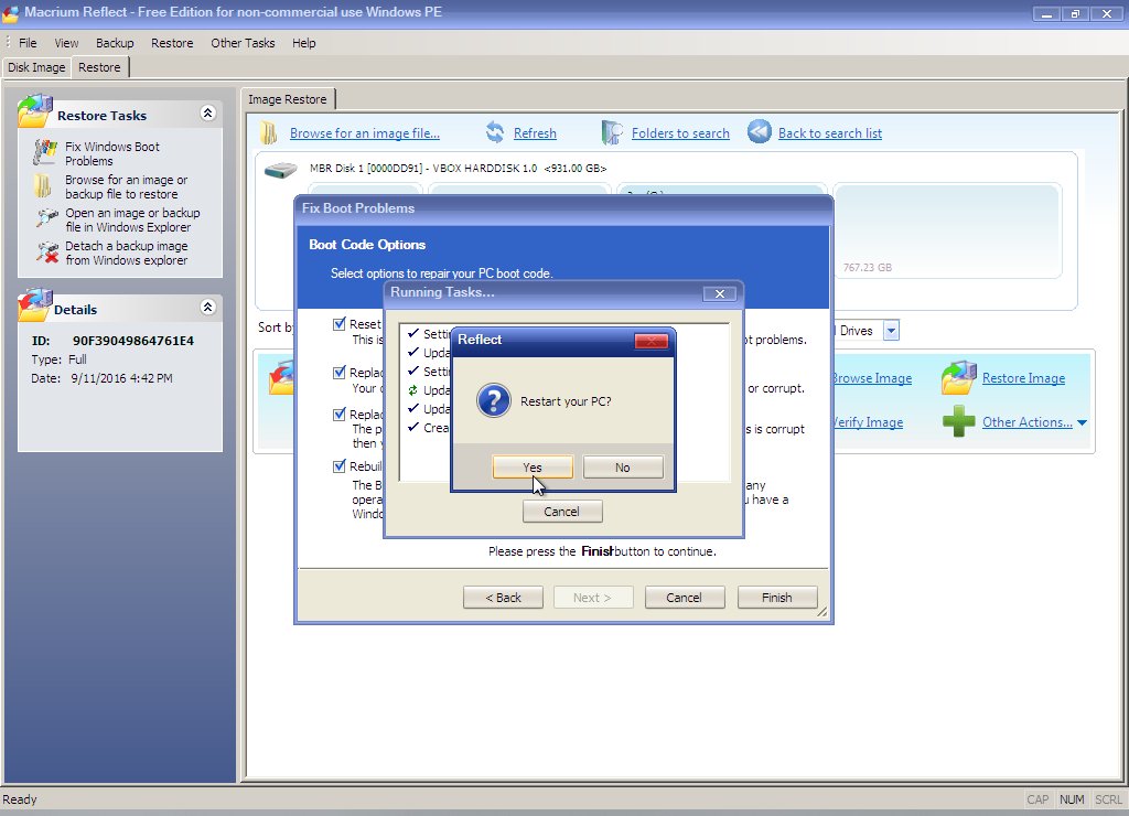 Macrium will configure the system so Windows will boot. When finished, remove the Macrium CD or USB stick and reboot the computer.