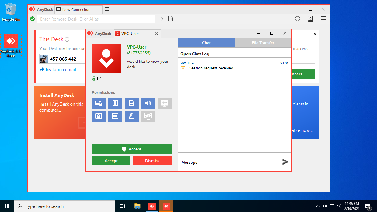 If prompted by a UAC window, Client must click "Yes" to allow AnyDesk to control the computer.