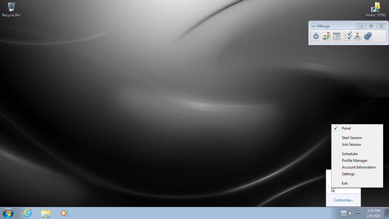 To terminate it, user can right-click on the Mikogo icon in the System Tray and select "Exit" from the popup context menu.