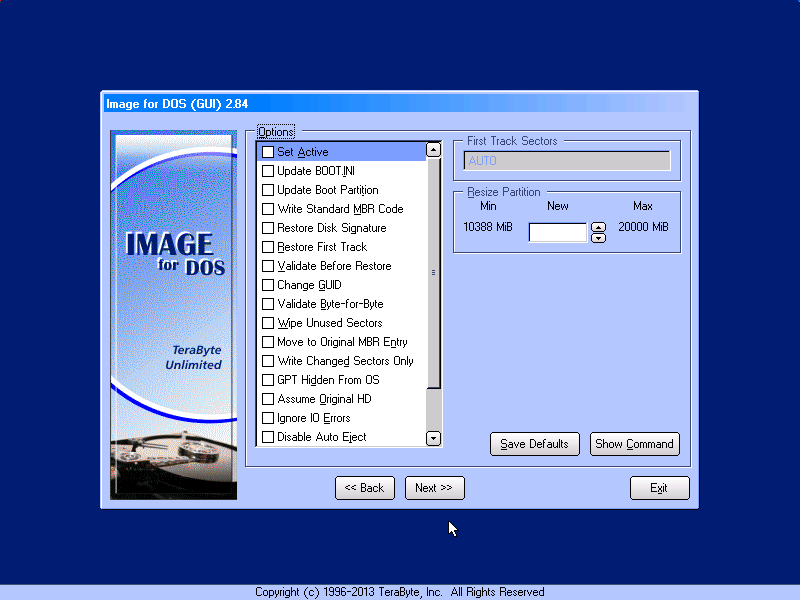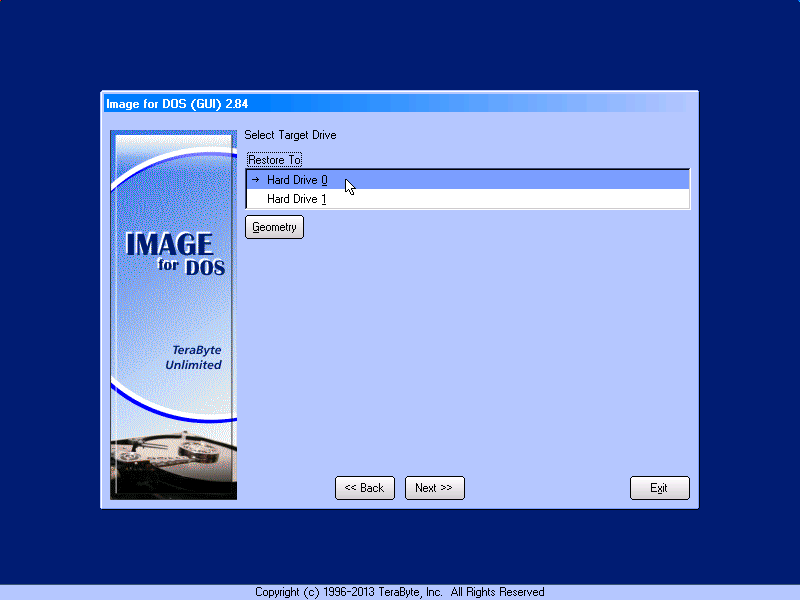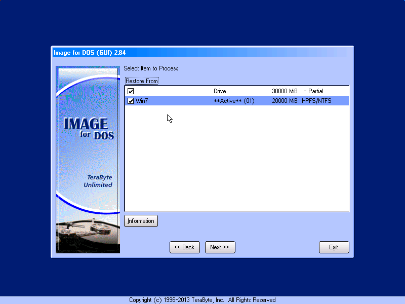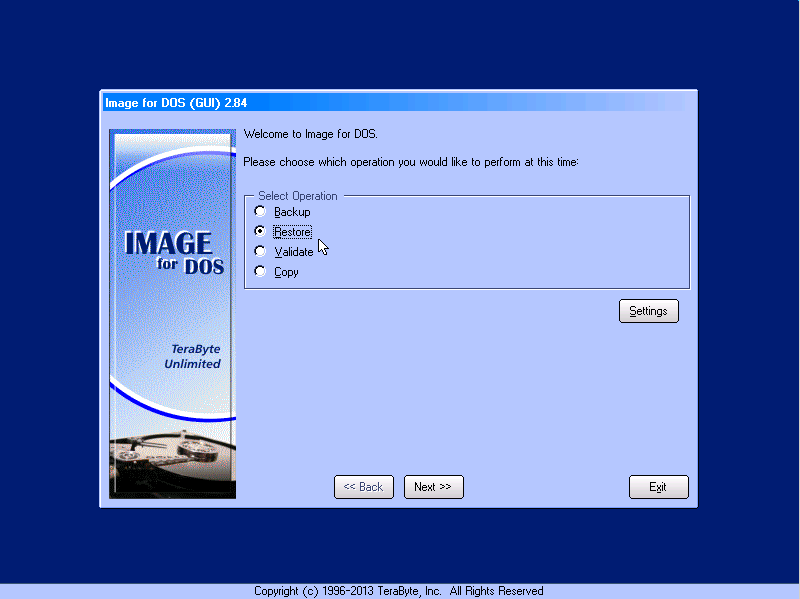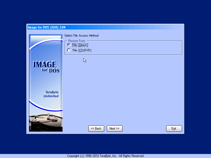 If you are booting from stand-alone "Image for DOS" boot media, boot the program and continue with Step 2.