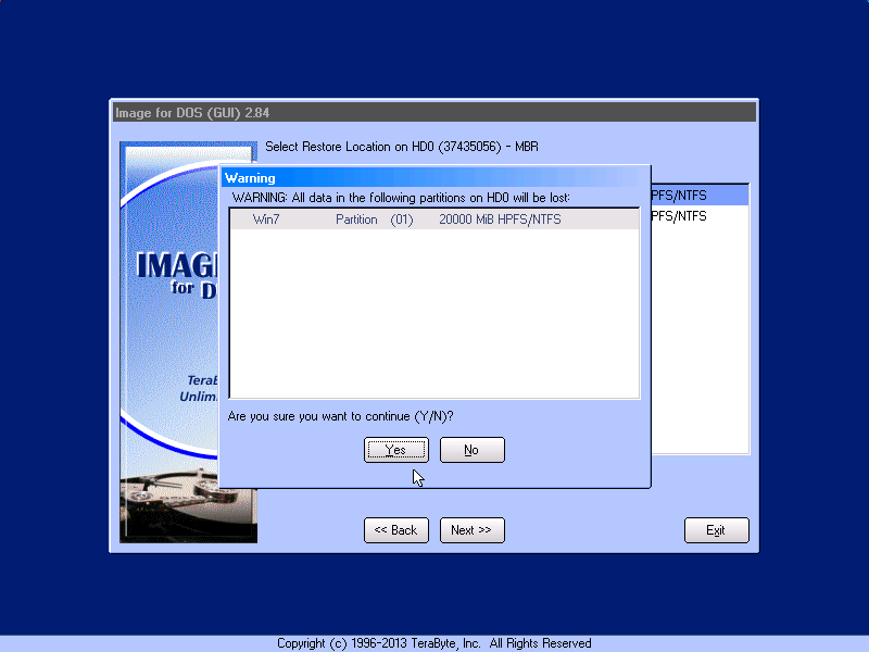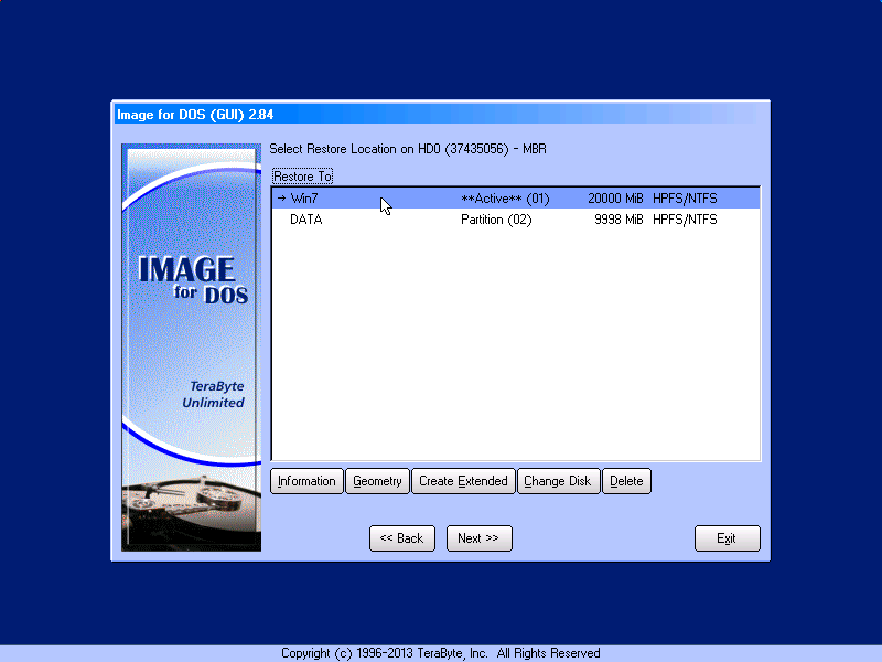 In this example, the backup image is \Backups\Terabyte\IFD-test-image.TBI in the DATA partition on Hard disk 1.