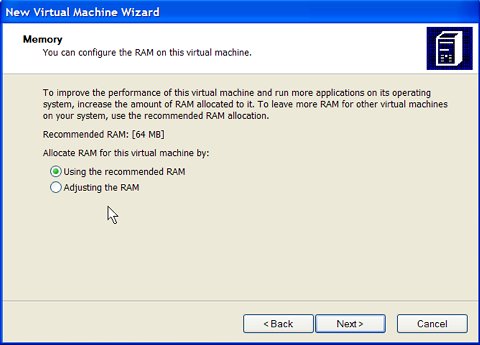 We can either choose to use the amount of ram recommended by the wizard (since we told it what OS we're going to install), or we can manually increase or decrease the amount of ram.
