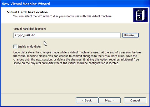 This process creates a file called win98.vmc on the E: drive. The vmc may have other files associated with it if the undo disks option has been enabled or if the state of a running vm session is saved.