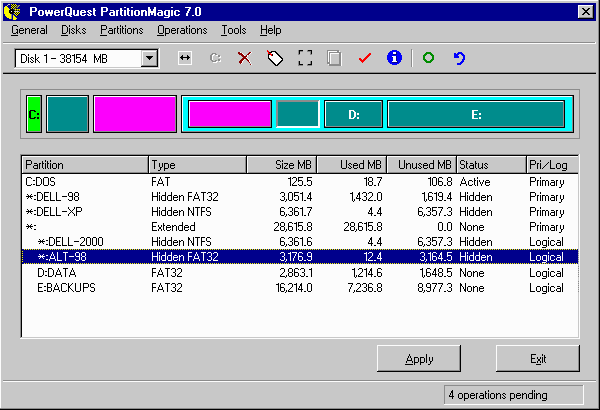 DriveImage backups of Win98, Win2000, and WinXP on one of the logical
