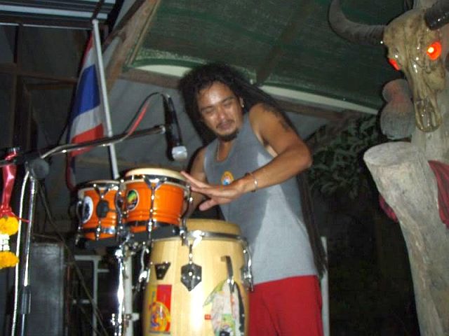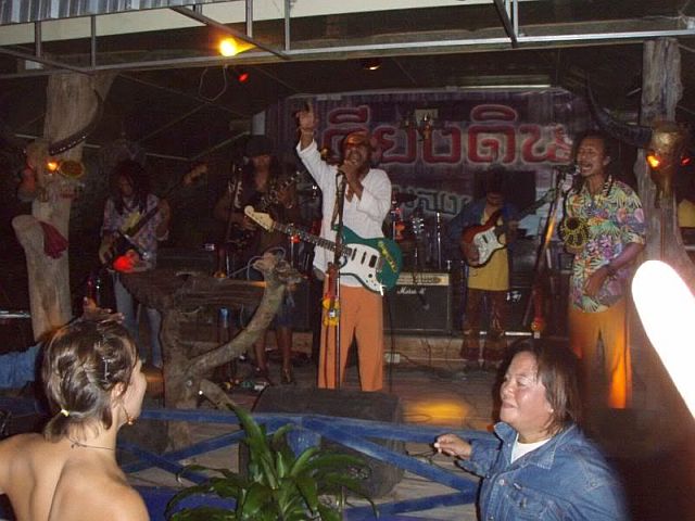 From Krabi we had a strict schedule to follow, of which timing was critical. It had come to us from a reliable source (Google) that Job 2 Do was playing in a town somewhere in Krabi Province on Friday the 28th. For those unfamiliar with the Thai music scene, Job 2 Do is a Thai reggae band that we fell in love with, as have many other travelers we've met. Since the town is small and not a typical destination for whiteies we had trouble finding people who knew of its existence. In the end we took a local bus from Krabi and jumped off in an unknown, non-tourist town. After inquiring at a few places about the whereabouts of the supposed restaurant where the supposed concert would be held we were rewarded with recognition and excited Thai babble which included the words 'Job 2 Do'. Nodding vigorously we were pointed towards the restaurant, where we found people preparing for what appeared to be a concert later. The prospect of Goodells at the concert excited them and they drove us to a nearby guesthouse so we could drop our bags and do our hair and stuff before the nights festivities.